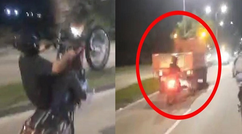 Redes Sociales: circula un video en el que un motociclista impacta contra un camión de limpieza por hacer peligrosas maniobras
