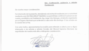 Alianza Libre confirmó la participación de Jorge Tuto Quiroga en el debate organizado por el TSE