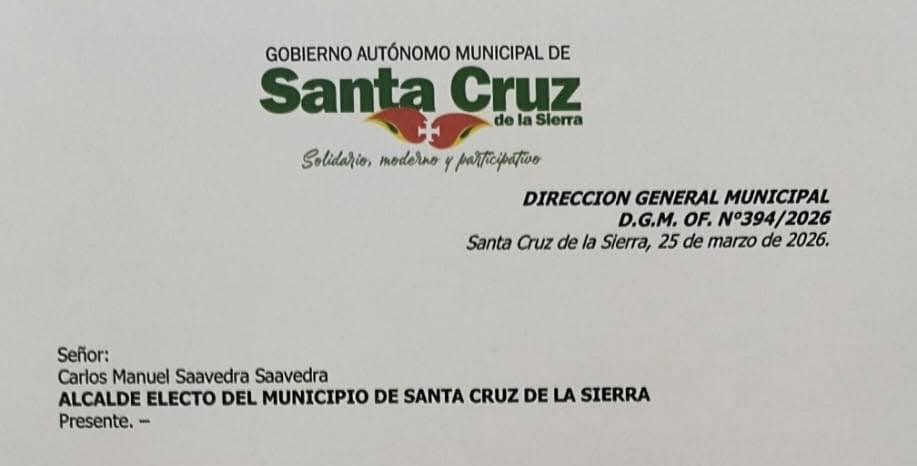 El alcalde electo de Santa Cruz de la Sierra, Manuel Saavedra, sostendrá este martes a las 17:00 su primer encuentro oficial con el actual burgomaestre, Jhonny Fernández, para iniciar el proceso de transición en la Alcaldía.