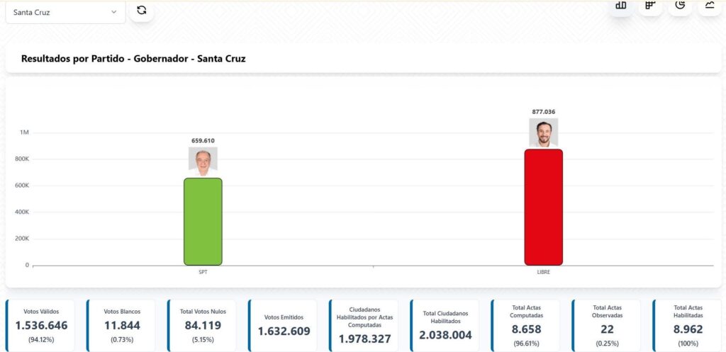 Con estos resultados preliminares, se consolida una diferencia clara a favor de Velasco, marcando el cierre de la contienda electoral por la Gobernación cruceña.