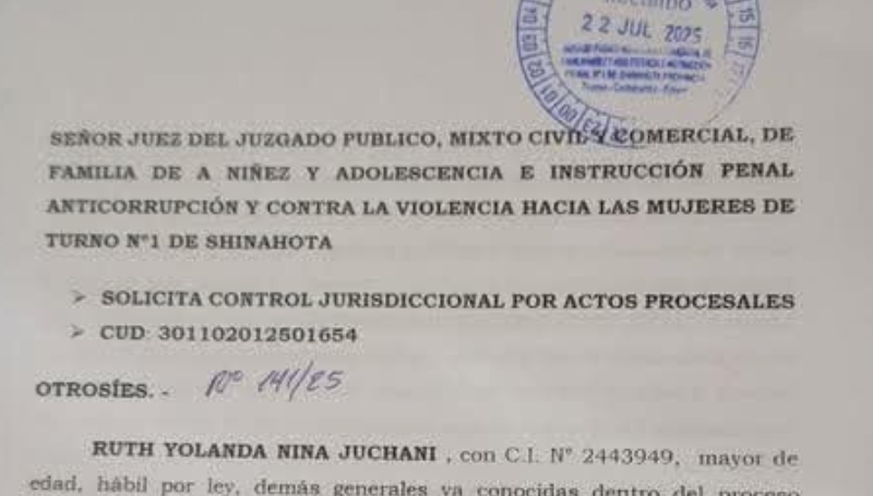La exdirigente y excandidata Ruth Nina se presentó por segunda vez consecutiva ante la juez competente de Shinahota, en el trópico de Cochabamba.