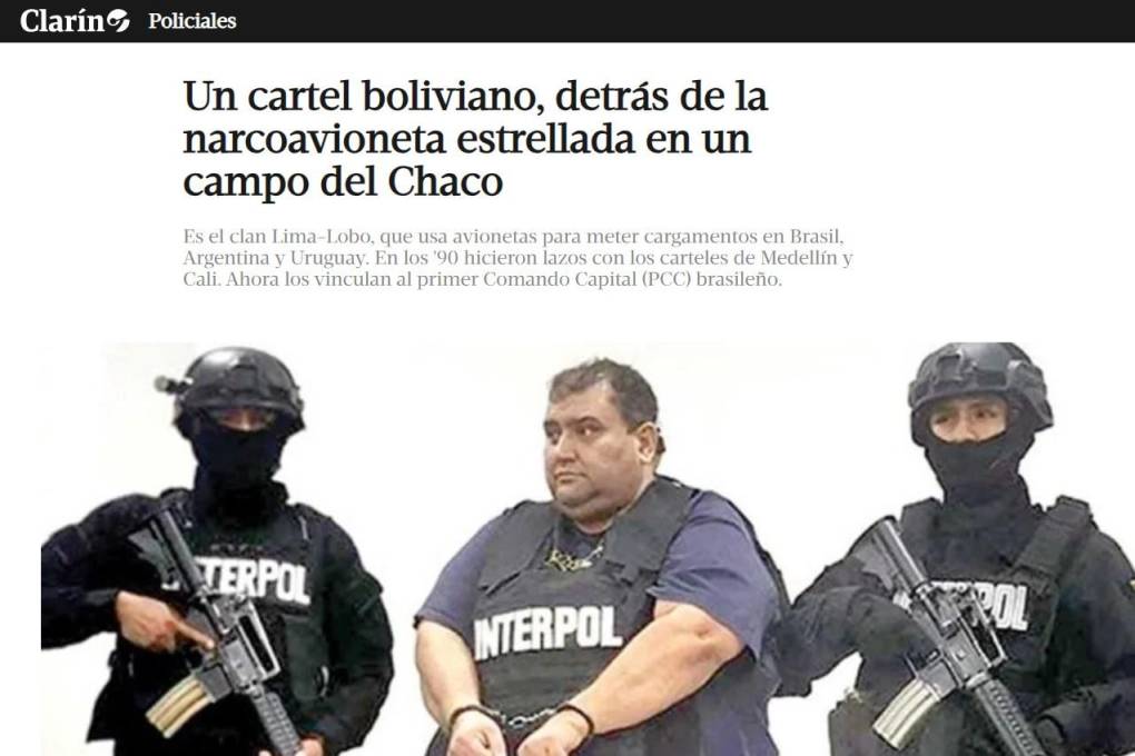 “Según fuentes consultadas por Clarín, ellos (los Lima Lobo) serían los dueños (al menos los dueños originales) del cargamento de 324,800 kilos de cocaína encontrados en la avioneta Cessna que, el martes por la tarde, se estrelló en un camino vecinal cercano a la localidad chaqueña de Avia Terai”, señala el diario.