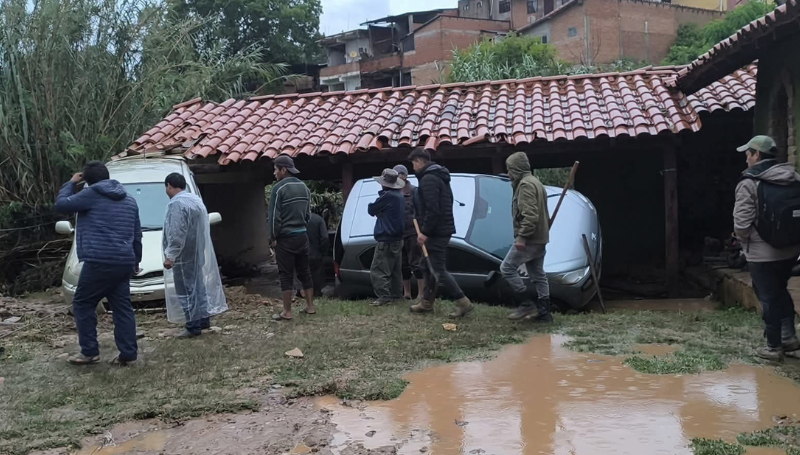 Personal del Gobierno Autónomo Municipal de Samaipata se encuentra en el lugar brindando apoyo a las familias damnificadas y evaluando los daños.