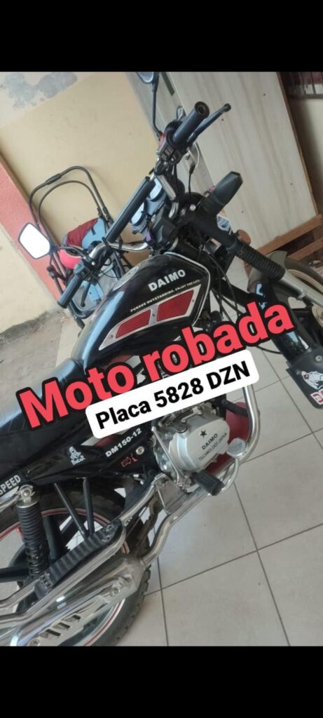 La motocicleta es marca DAIMO color negro con placa 5828-DZN, si usted amigo lector tiene alguna información por favor contáctese al 63331904, se dará recompensa a la persona que ayude a encontrar la motocicleta.